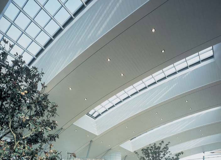As diversas linhas de forros metálicos HunterDouglas® atendem a todo tipo de projeto. Em versões lisas e perfuradas, em aluzinc ou alumínio, são compatíveis com sistemas de iluminação, ar condicionado e outros permitindo a racionalização e zoneamento das entalações.